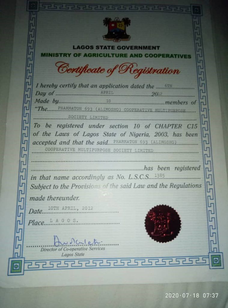 The Society won a Lagos State Award as the best managed Primary Cooperative Society (Community based) twice in 2011 and 2012.